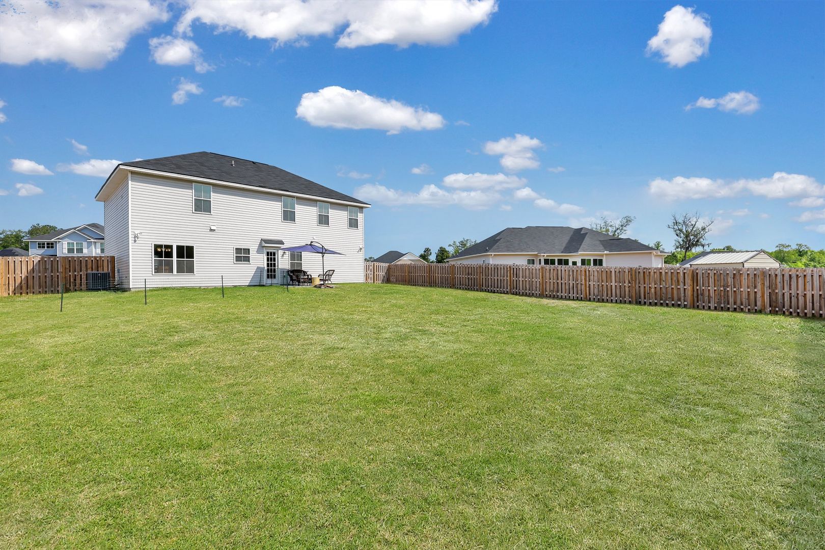 Relax and enjoy the outdoors; the backyard, surrounded by a privacy fence, serves as a serene oasis for relaxation and outdoor enjoyment.