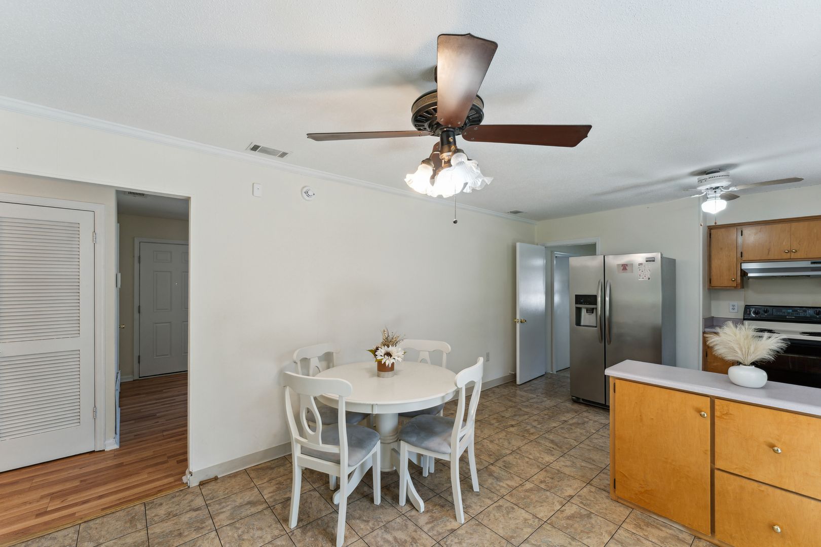 Welcome Home! This house features a chain link fence backyard, ceiling fans throughout, as well as newer flooring, paint, and roof!