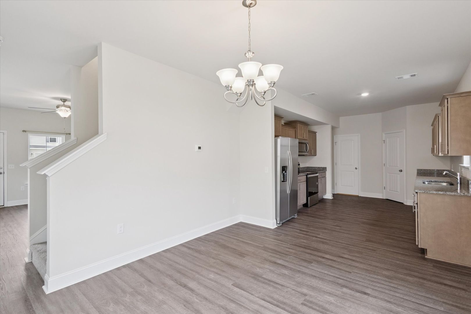 Step inside and be greeted by an open floor plan that seamlessly connects the living room, dining area, and kitchen. The downstairs features: