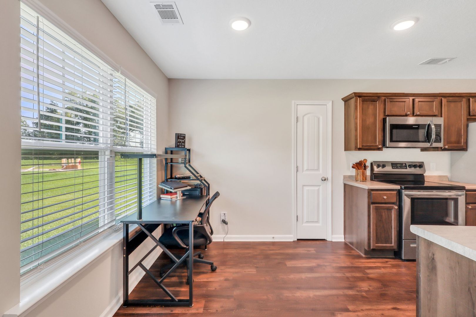 The spacious kitchen, complete with sleek stainless steel appliances and a cozy breakfast nook, makes meal prep a breeze. Whether you’re hosting a dinner party or enjoying a quiet family meal, the formal dining room offers the perfect setting.