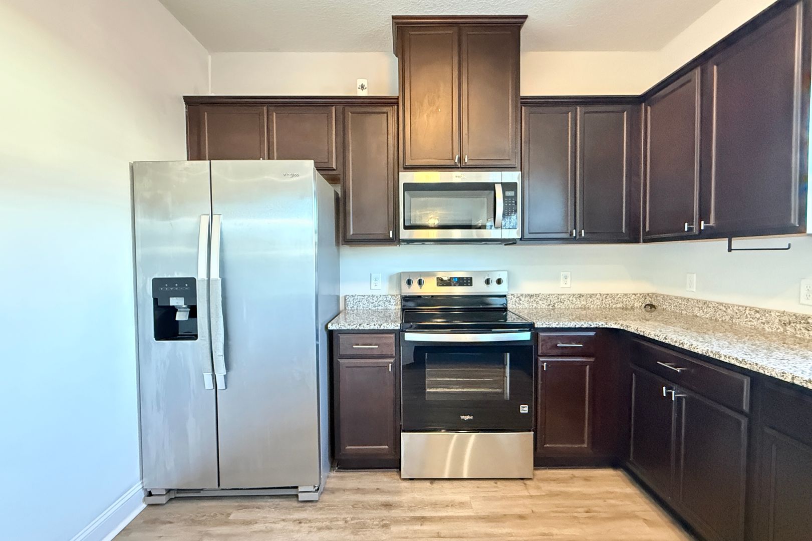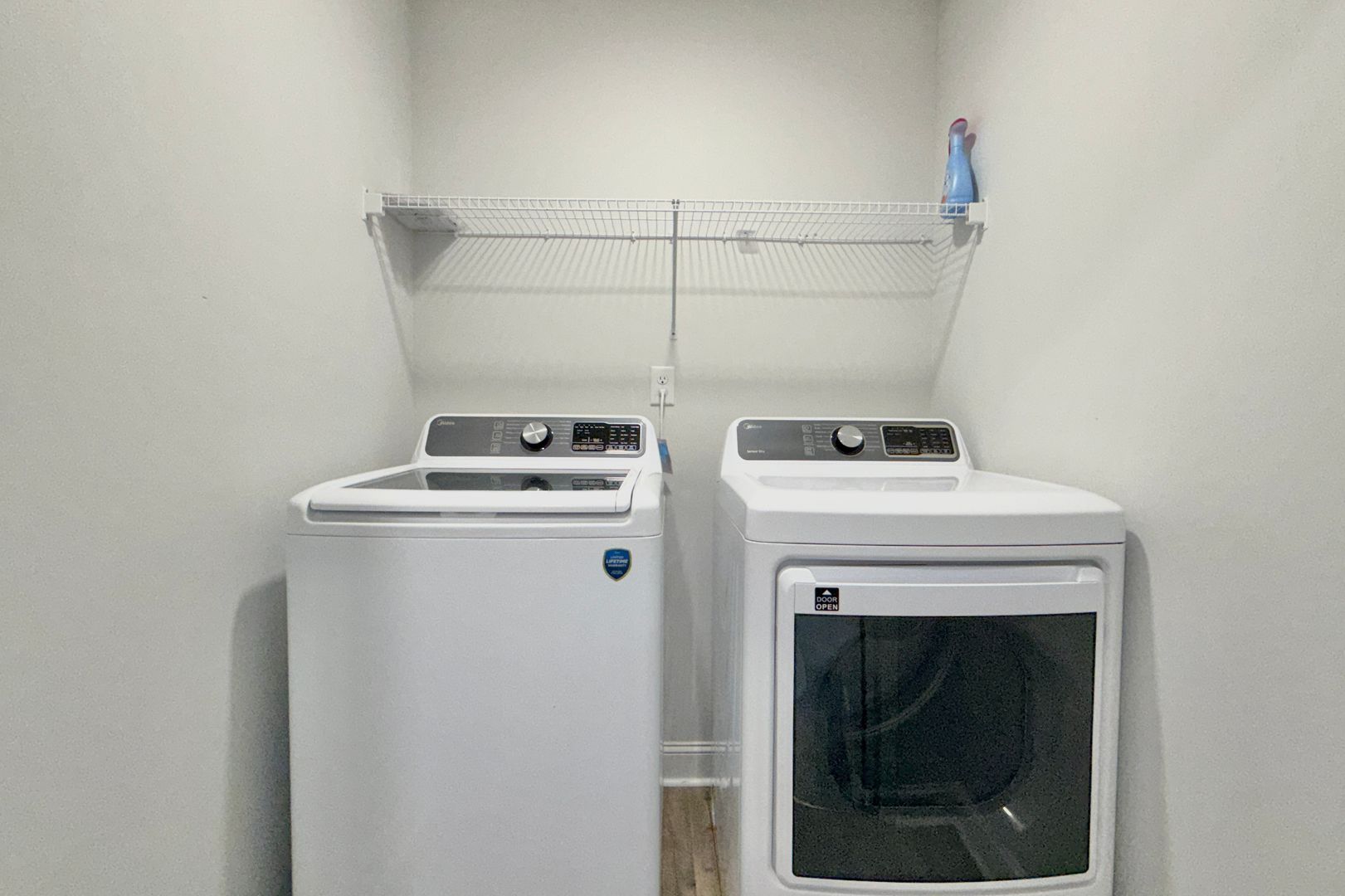 As you enter the home, you’re welcomed by a foyer with stairs leading to the second floor and a separate dining room. The layout flows easily from the dining room into the kitchen and main living area. A half bathroom is also located downstairs for added convenience.